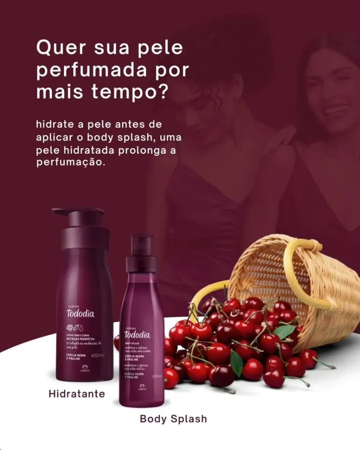 Kit Cereja Negra e Praliné. 1 Hidratante 400ml+ Body Splash 200ml -Natura