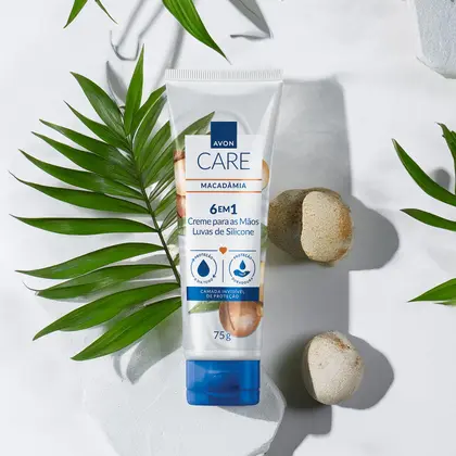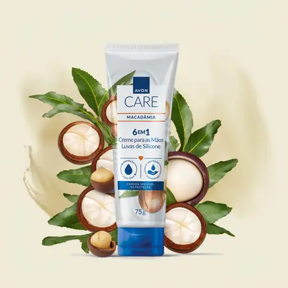Luvas de Silicone de Avon Care cria uma camada invisível que protege as mãos do ressecamento causado pelo uso de detergente, sabão e outros agentes agressores. Possui fragrância de Macadâmia e deixa as mãos perfumadas e com sensação de macias. Sua fórmula de rápida absorção hidrata a pele por 24h sem deixar sensação pegajosa. Dermatologicamente testado. Com propriedade desodorante.