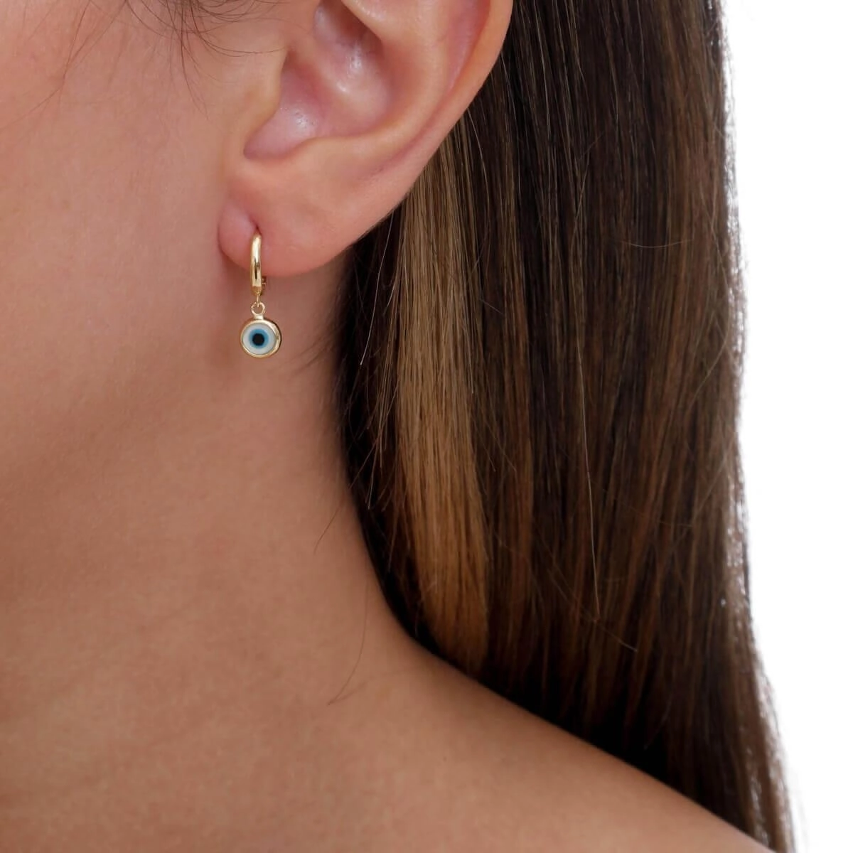 Perfeita para você usar como um amuleto da sorte, para que tem esta fé, as argolinhas com pingentes de olho grego ajudam a espantar a as energias negativas e atraem as energias positivas ao seu redor! Não perca!