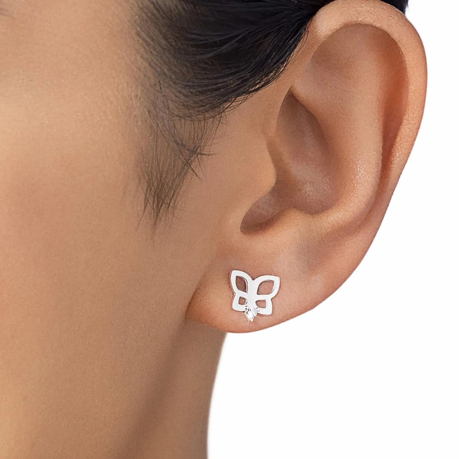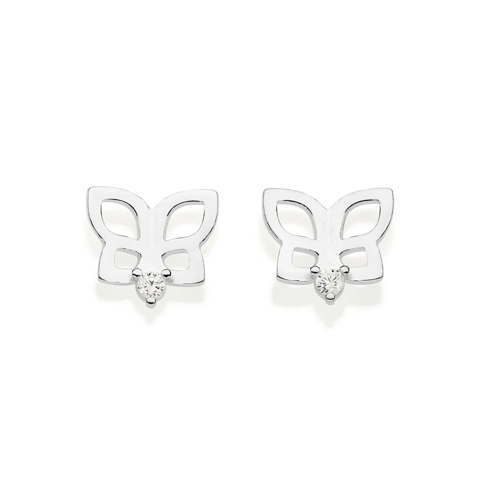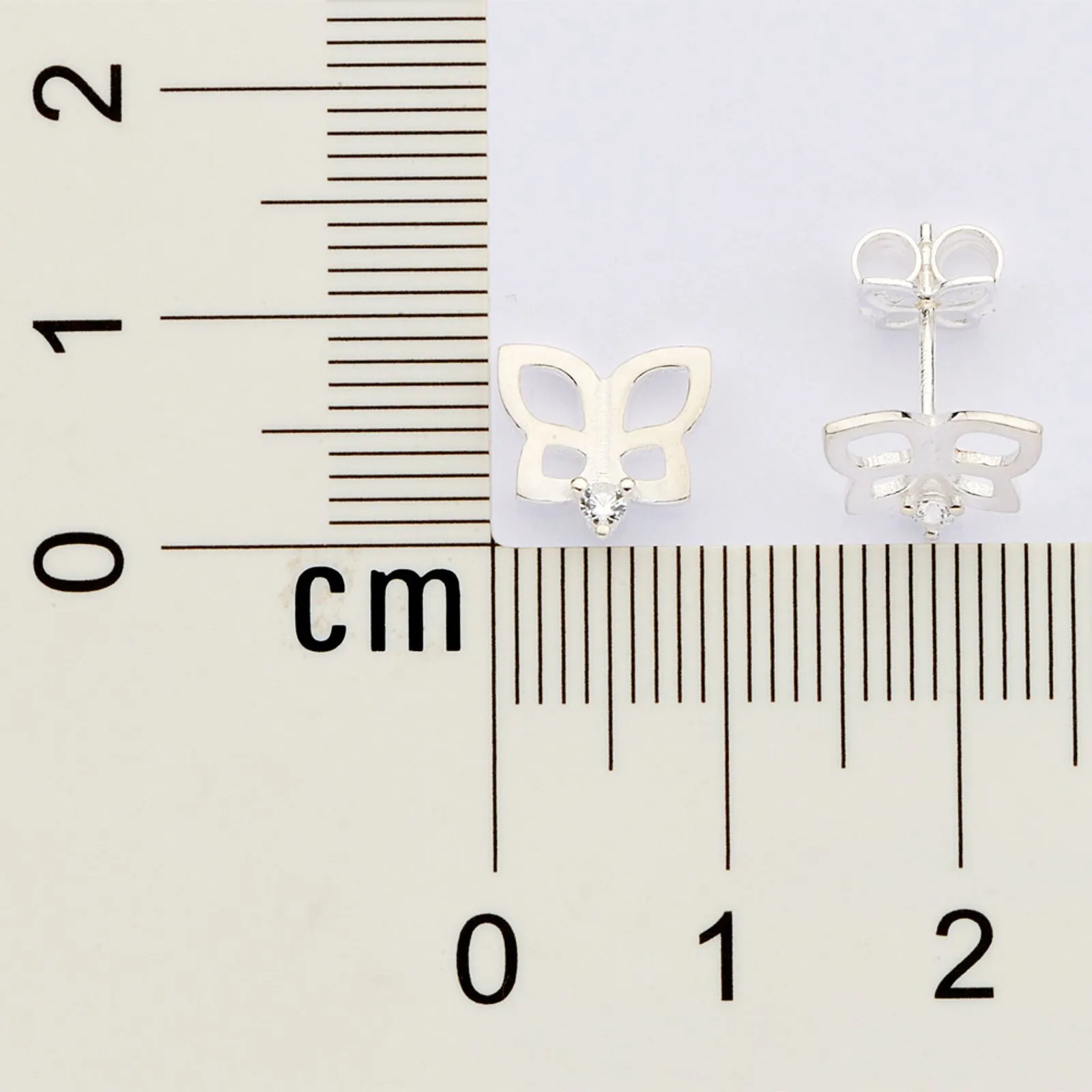 Brinco Rommanel borboleta vazada com  zircônias de 2,0 mm (par). Coleção Prata 925.