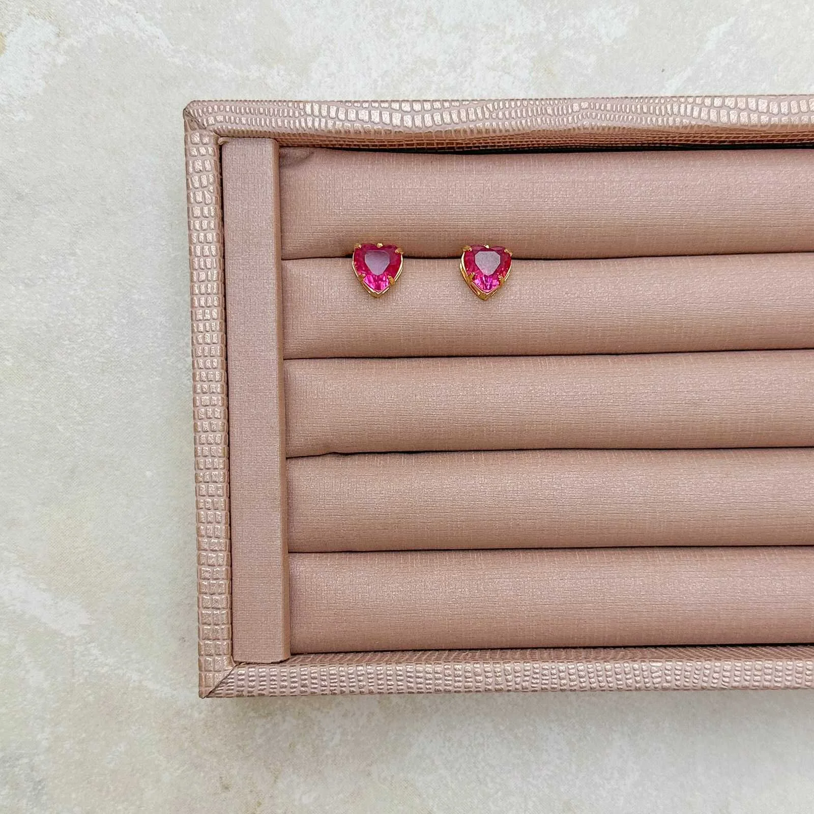 Uma semijoia clássica e delicada, essas palavras definem bem o par de brincos com pedra de coração de zircônia. Perfeito para milhares de ocasiões, ele com certeza vai transformar e realçar o seu visual com essa linda pedra de zircônia em formato de coração na cor rosa