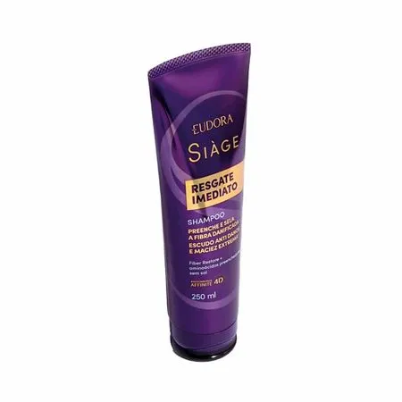 Quais os benefícios do Eudora Siage Resgate Imediato Shampoo? 1. Restauração Profunda; 2. Efeito Preenchedor Antiquebra; 3. Envelopa os fios, criando um escudo protetor que previne danos futuros, com proteção UVA e UVB; 4. Maciez e Brilho; 5. Garante cutículas totalmente seladas; 5. Clean Beauty e Vegan.
