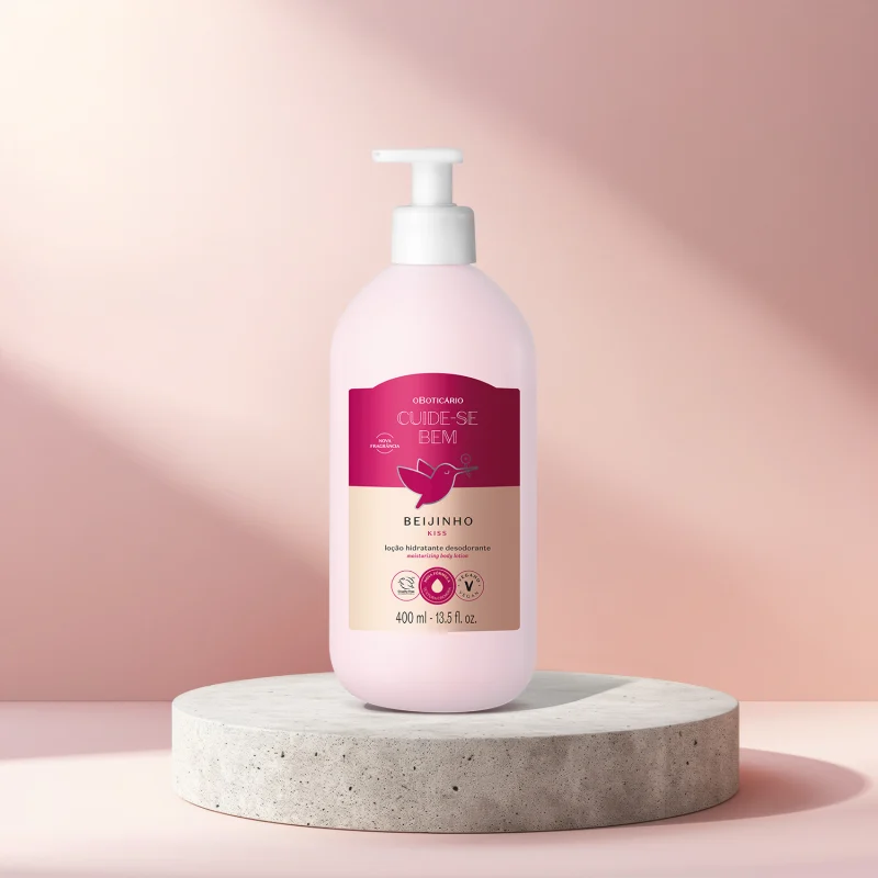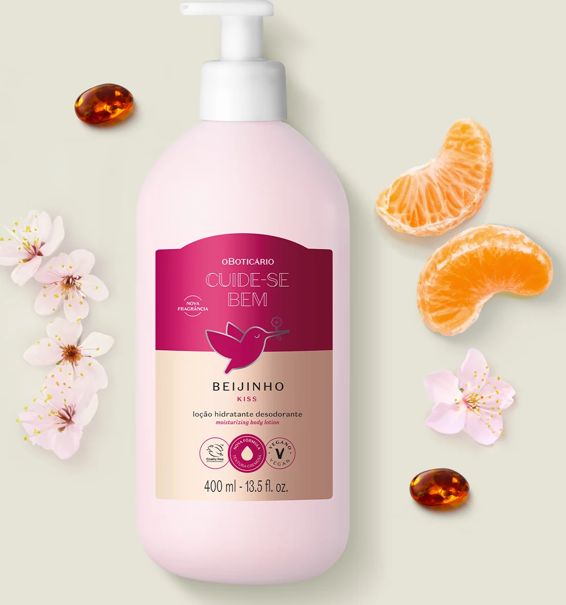 Conheça a nova linha Cuide-se bem Beijinho. Um verdadeiro carinho para a pele seca e extra seca!A Loção Hidratante Desodorante Corporal Beijinho hidrata profundamente a pele, sem deixá-la com aspecto esbranquiçado.Contém extrato de flores e manteiga de Karité em sua fórmula e possui ainda uma textura mais consistente, garantindo uma ultra hidratação imediata e rápida absorção. Com uma fragrância floral surpreendente, deixa a pele com um cheirinho irresistível!
