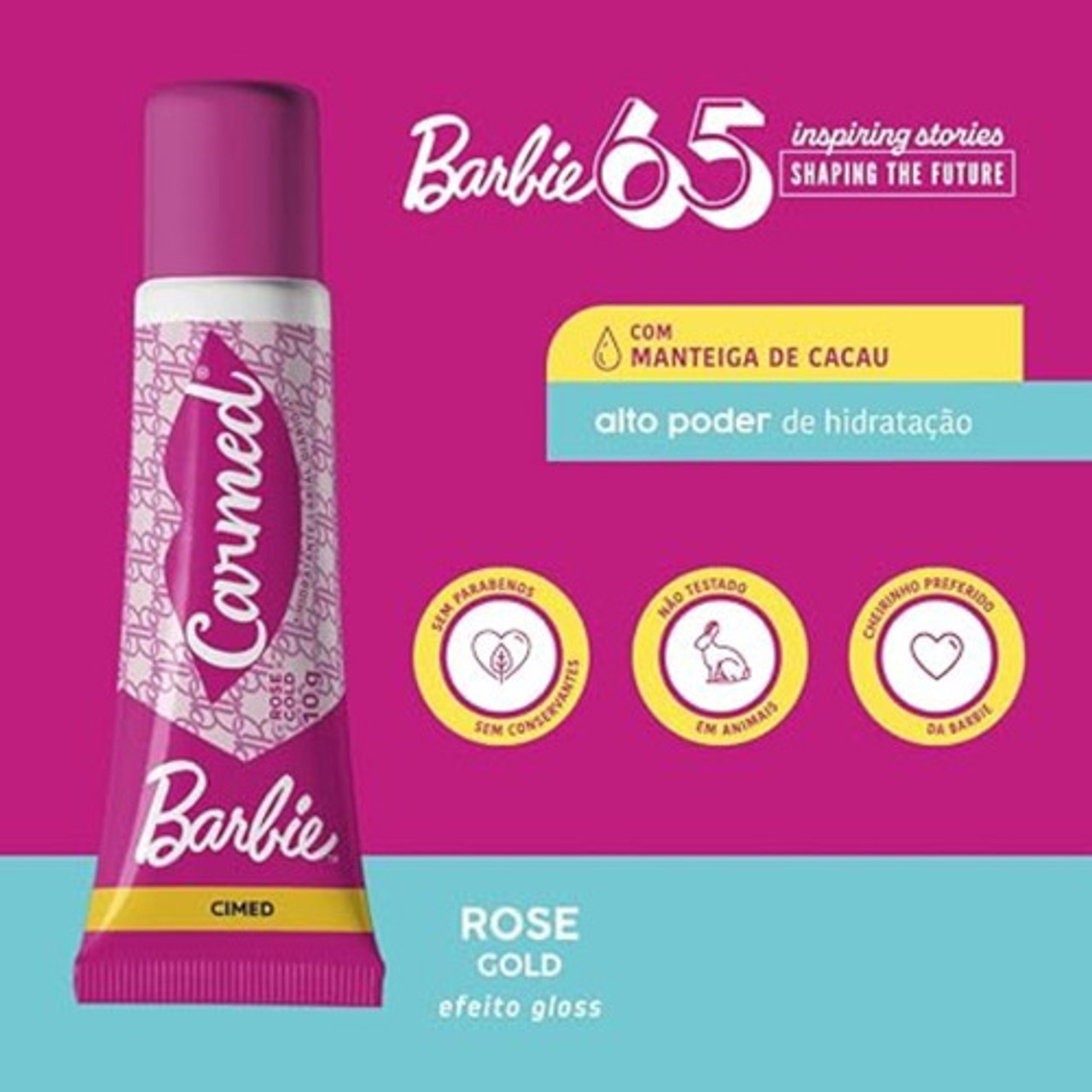 O Hidratante Labial Carmed Barbie Rose Gold 10g combina cuidado intenso com um toque de brilho elegante e feminino. Enriquecido com ativos hidratantes, protege os lábios contra o ressecamento, deixando-os macios, nutridos e com leve efeito glow. A fragrância delicada e a embalagem inspirada no universo Barbie tornam o uso ainda mais especial. Ideal para usar no dia a dia ou por cima do batom. Prático, colecionável e perfeito para quem ama beleza com estilo!